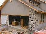 Stone work is underway. Trim carpenters are nearing completion. Doors are in, tile work is done, hardwood floors installed, and painters are started on exterior.
