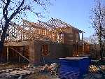 Framers have been working for 8 days now. Walls are complete on first and second floor. Roof is starting to take shape.