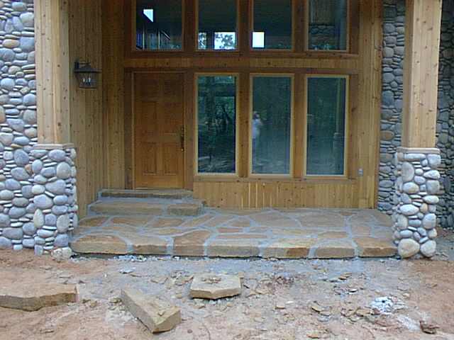 Front porch is covered with native sandstone.