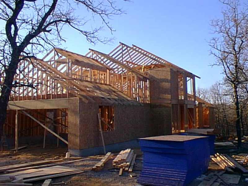 Roof framing is mostly complete. Roof decking and exterior walls are next.