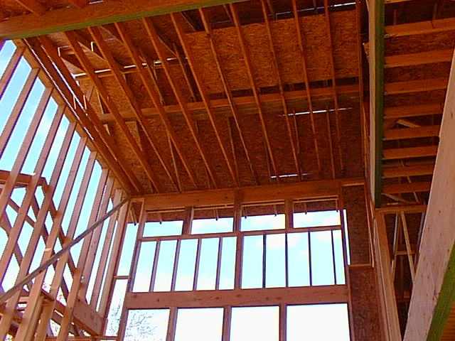 Looking toward front of living room ceiling. The joists are something like 25 feet high.
